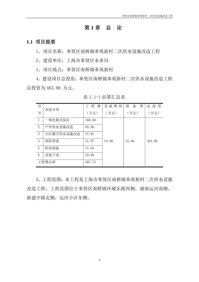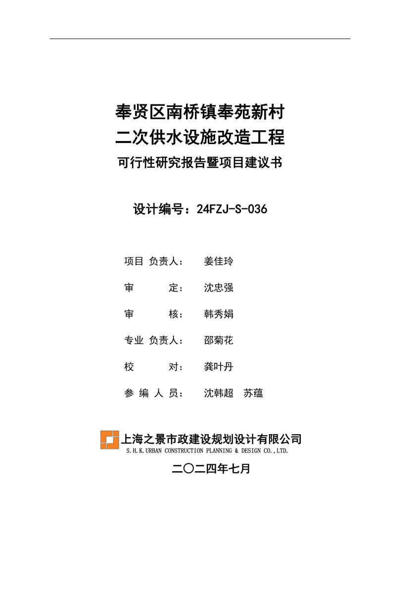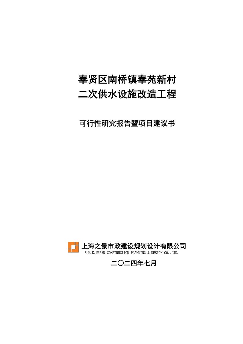 奉贤区南桥镇奉苑新村二次供水设施改造工程设计文件公示 2024-08-30